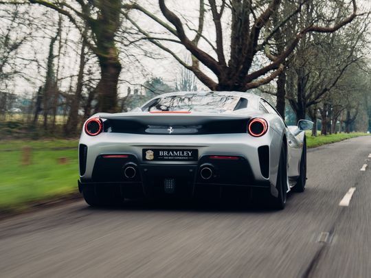 Finished in Argento Nurburging (a colour which we believe complements the shape of the Pista superbly) and paired with a Blu Scuro Alcantara interior with Blu America Racing Stripe, this is a fabulously attractive motorcar. Treated to paint protection film and sold with the balance its service plan and a 24-month warranty.