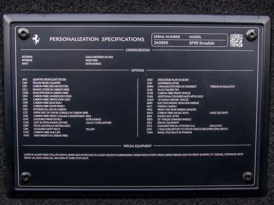 This example benefits from a strong factory specification, carefully configured to complement the car’s dramatic styling and driver-focused cockpit without detracting from its core appeal: pure performance and presence. With its vivid colourway, advanced hybrid engineering and flagship status, it delivers the full impact expected of Ferrari’s halo production model.