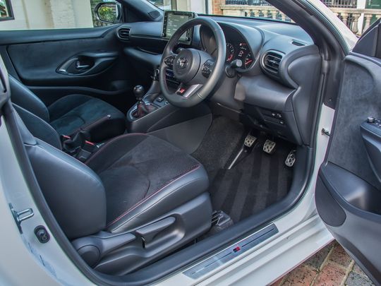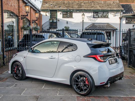 Power comes from a 1.6-litre turbocharged three-cylinder engine producing 257 BHP, delivered through the advanced GR-FOUR all-wheel-drive system and a 6-speed manual gearbox. The result is a car widely praised for its balance, grip and driver engagement — often regarded as one of the finest modern performance cars in its class.