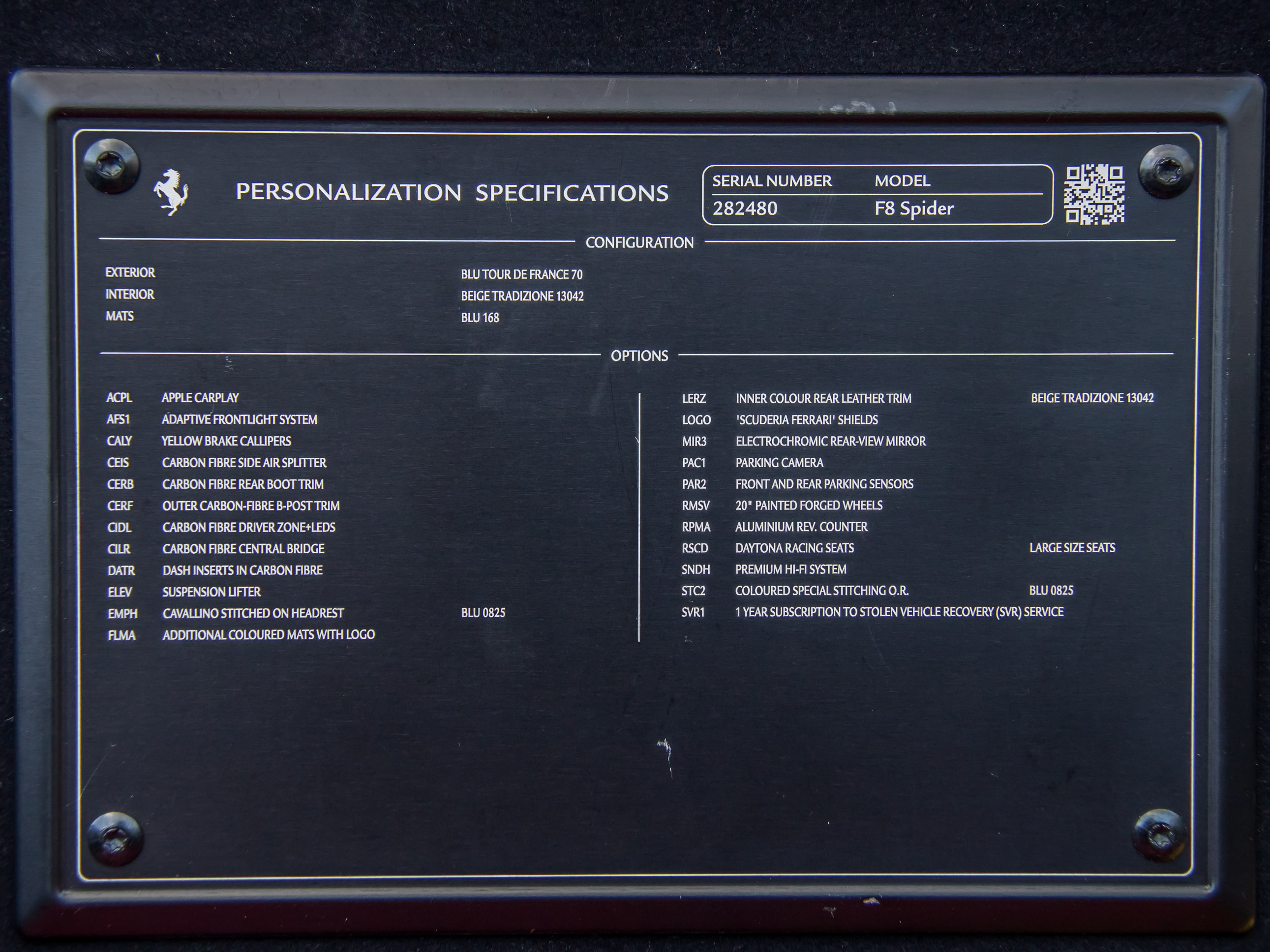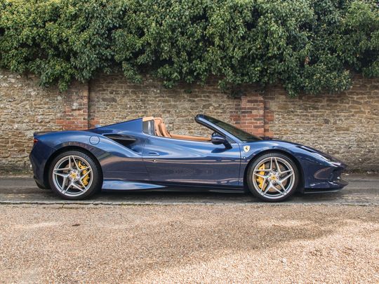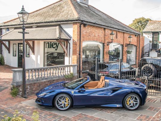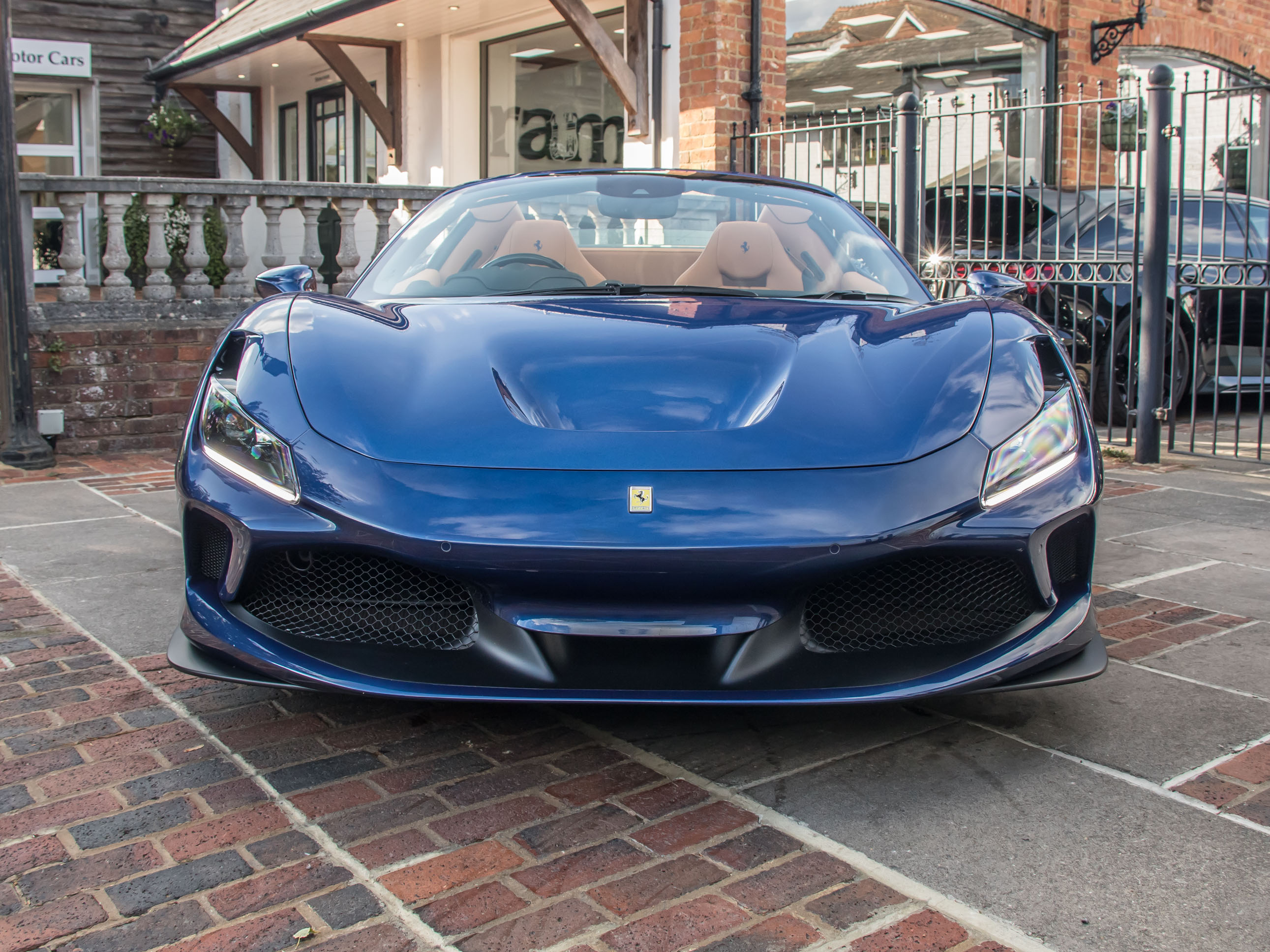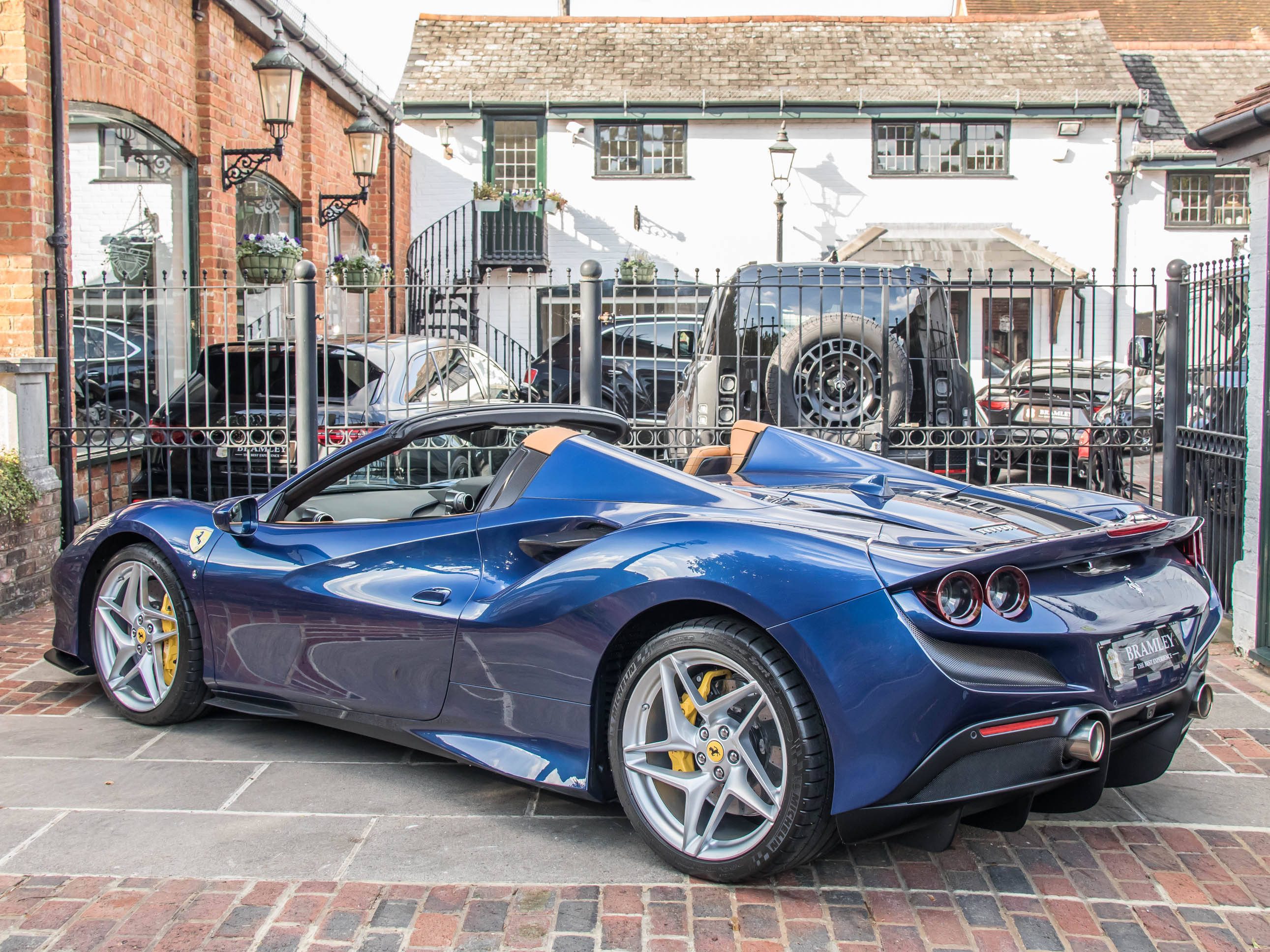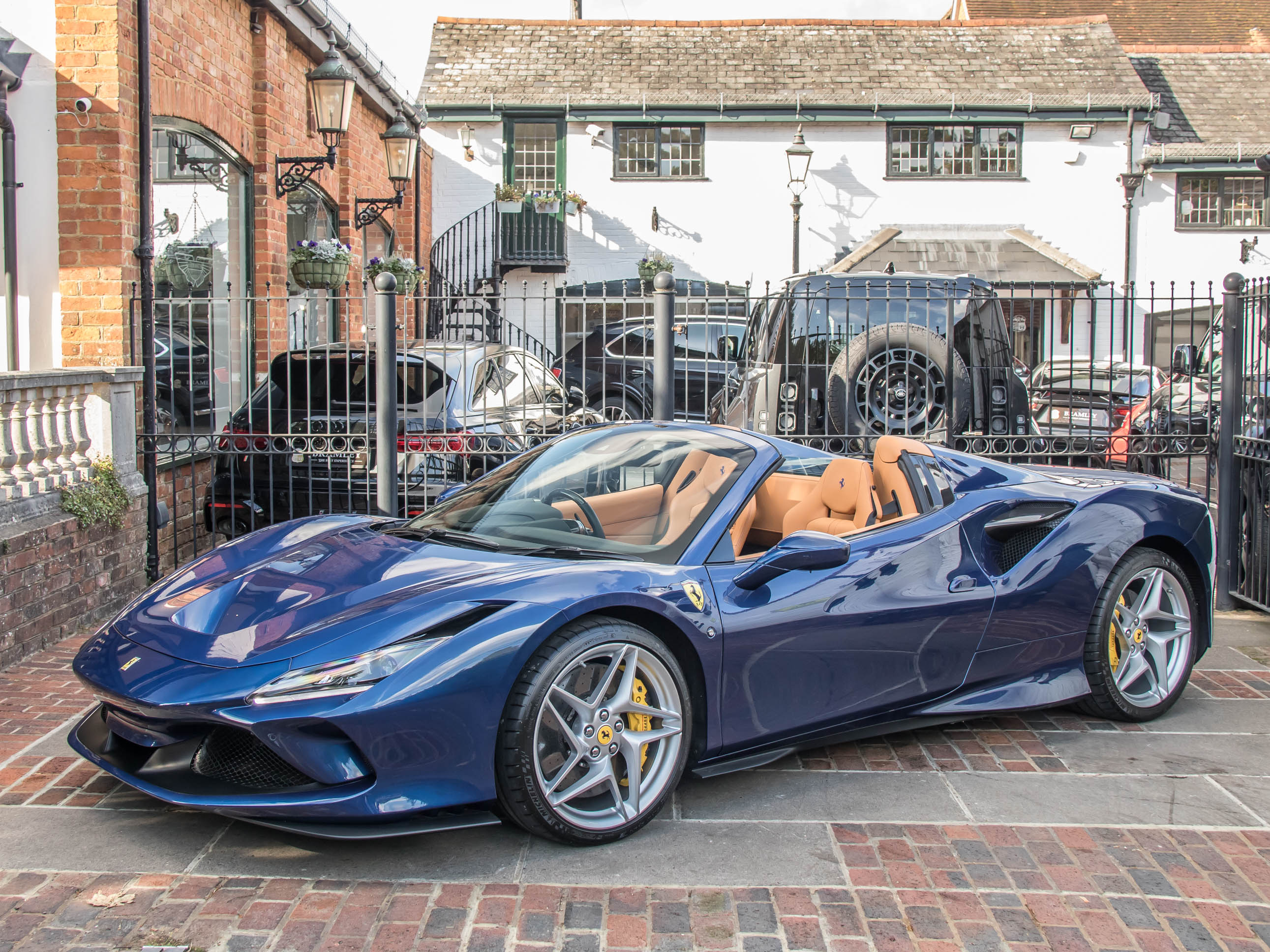 This fabulous 2022/22 registered F8 Spider has been finished in Blu Tour de France and is complemented by a Beige Tradizione hide interior with Blu contrasting stitching. It has had just two registered owners and benefits from having full PPF and Metatrak S5 Tracker, as well as a Front Axle Lift System and a host of other essential options.