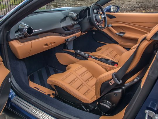 Beneath the engine cover lies a 3.9-litre twin-turbo V8, delivering approximately 710 bhp and an immensely flexible torque curve. Launching from 0-62 mph in around 2.9 seconds, the F8 Spider is capable of exceeding 200 mph with the roof down, all while maintaining the poise and precision that Ferrari is famed for.