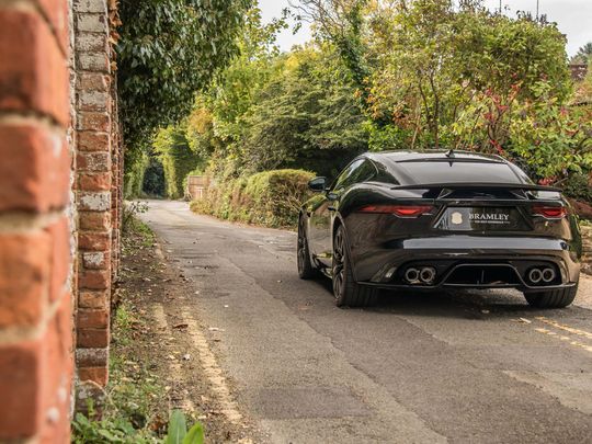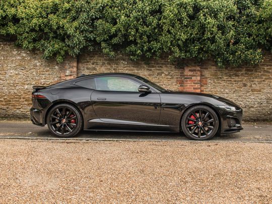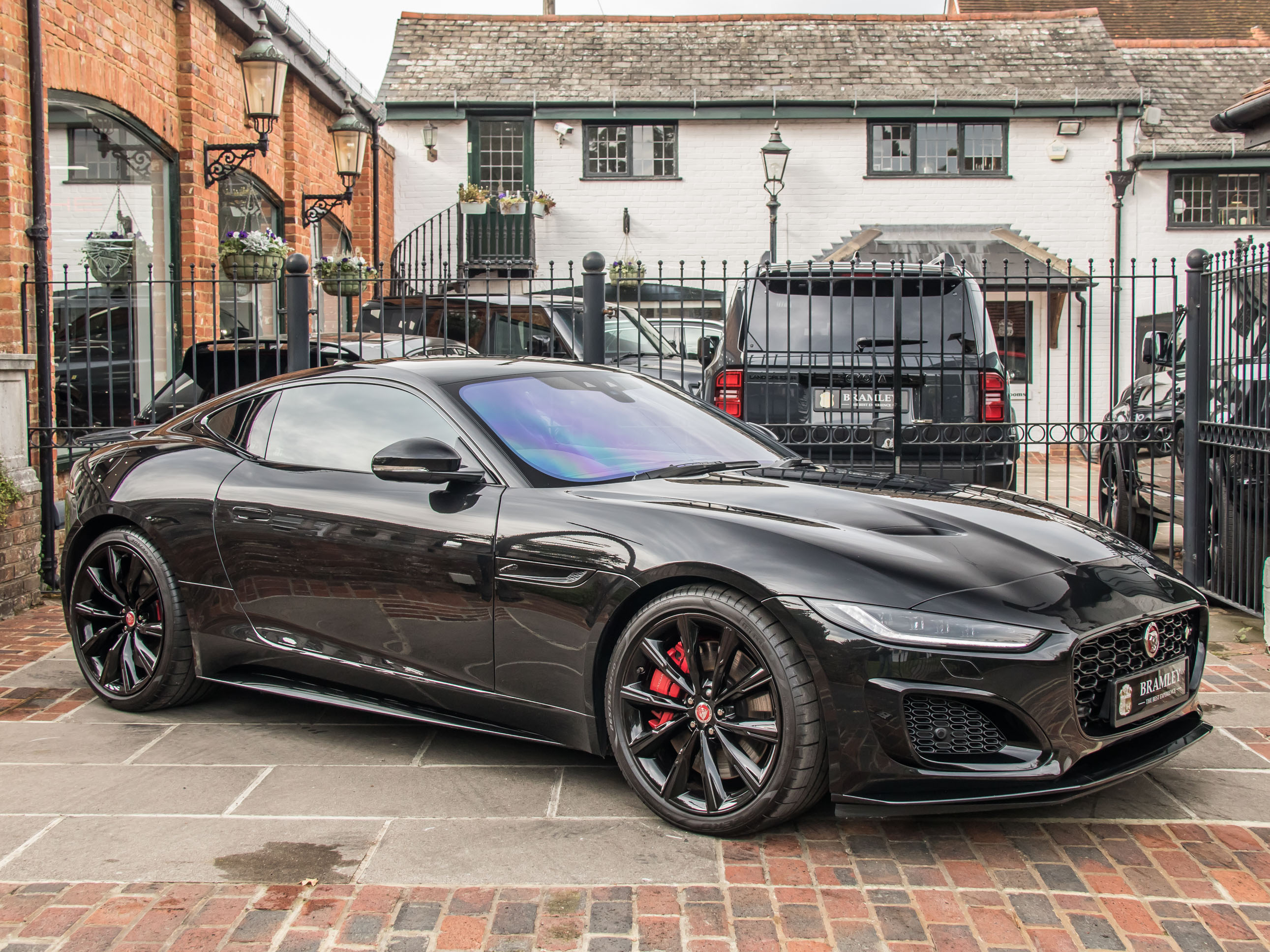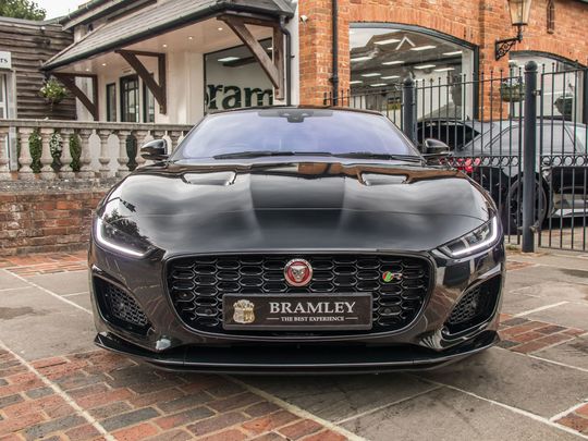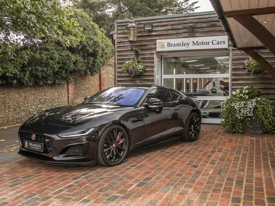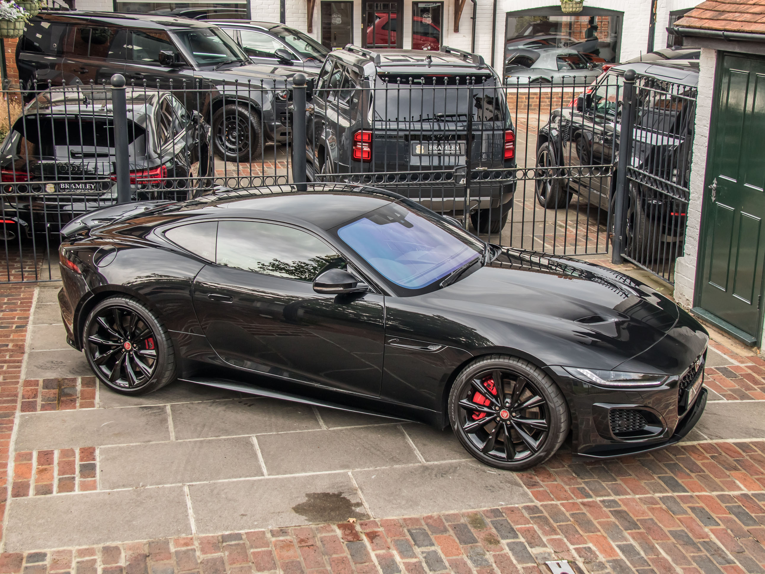 We are delighted to present this fabulous example of the Jaguar's range-topping F-Type, finished in Santorini Black over a Black leather interior.