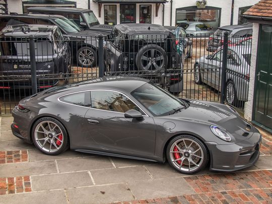 We are delighted to present this exceptional 2022 Porsche 911 (992) GT3 Touring, a superbly specified and thoughtfully curated example of Porsche’s most engaging modern 911. Originally finished in Black, this car is now protected and transformed by a full XPEL Coloured Paint Protection Film in Steve McQueen Slate Grey, giving it a distinctive, period-inspired appearance while preserving the original paintwork beneath.