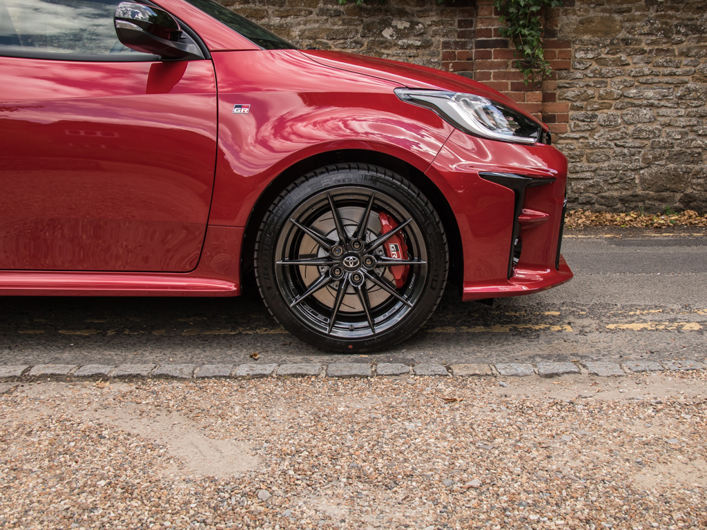 As a Circuit Pack model, this example benefits from key performance upgrades including front and rear Torsen limited-slip differentials, lightweight 18-inch forged alloy wheels, red brake callipers, and uprated suspension, distinguishing it as the most focused version of the GR Yaris range.