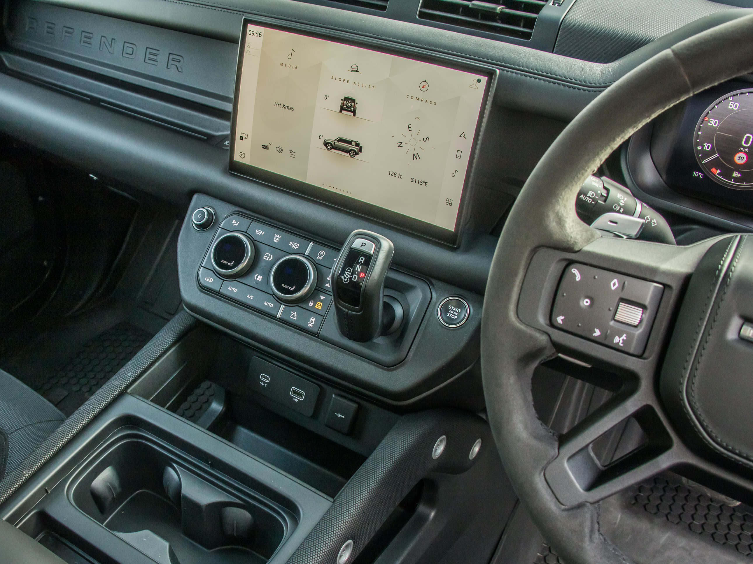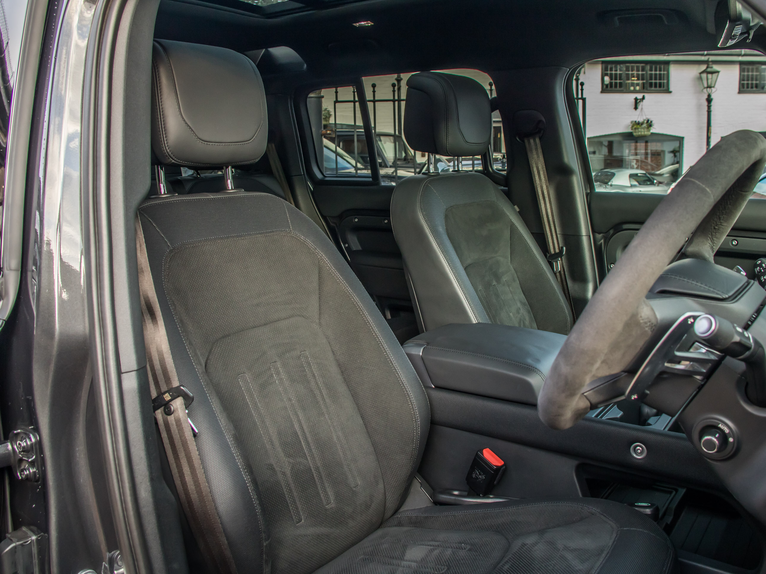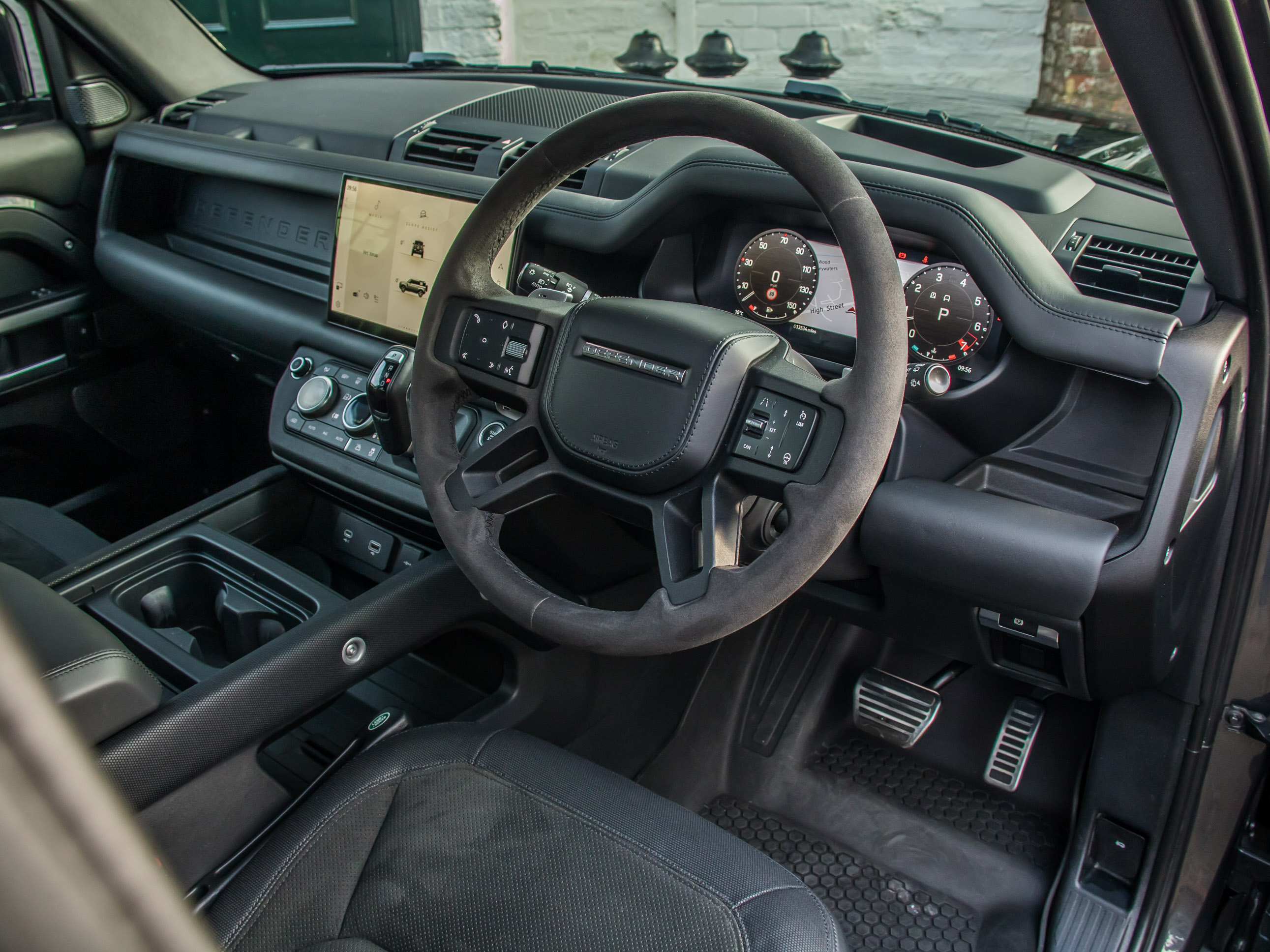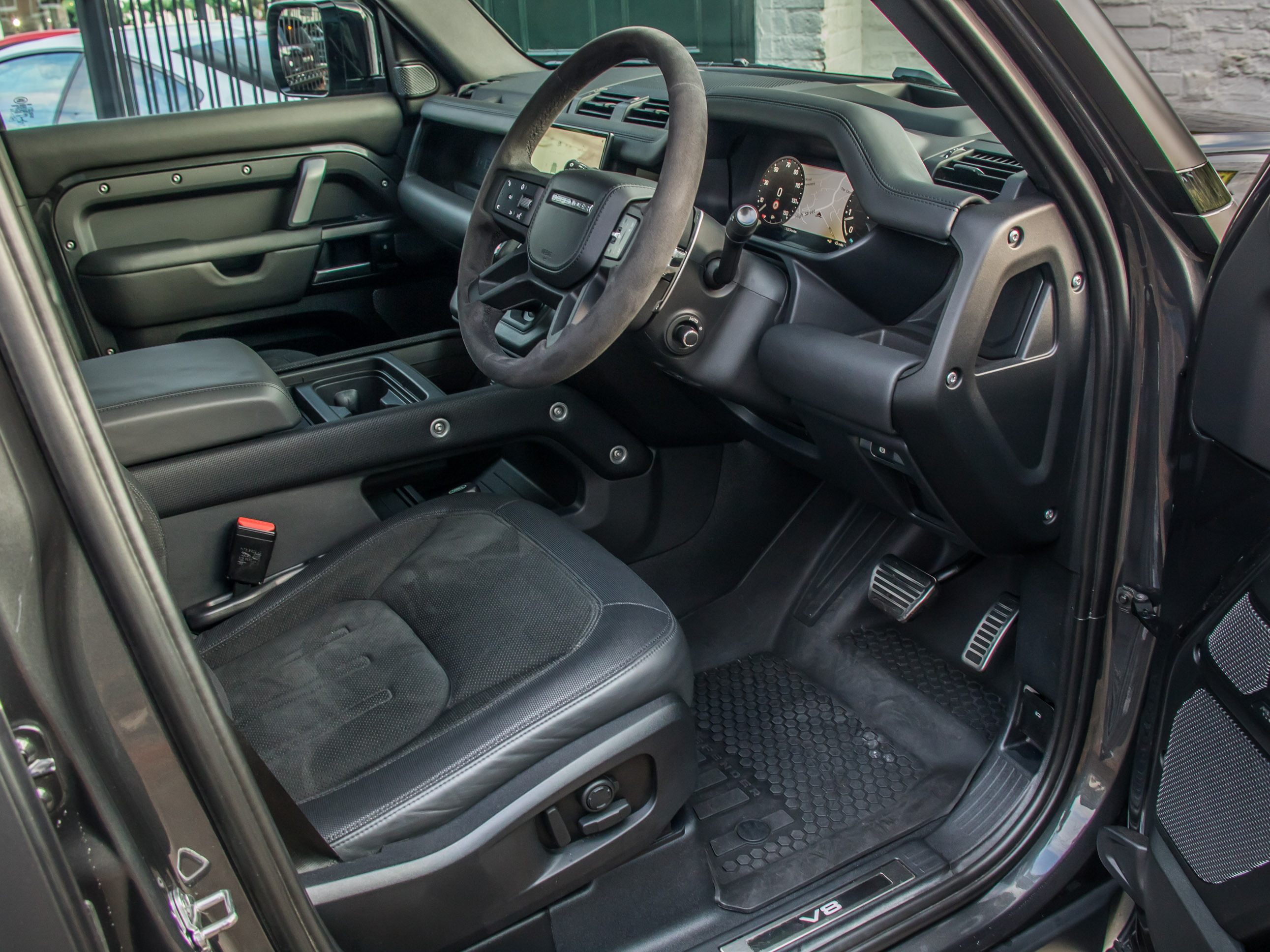 Powered by the 5.0-litre supercharged V8, the P525 offers impressive performance while retaining the Defender’s renowned capability and comfort. As the top-tier model, it comes equipped with a comprehensive specification, including Matrix LED headlights, electronic air suspension, Meridian sound system, heated and cooled seats and a full suite of driver assistance systems.