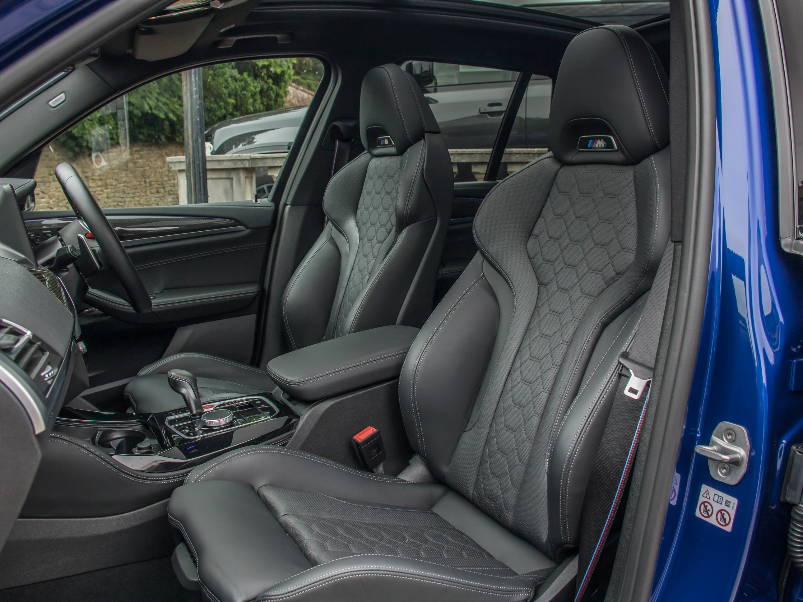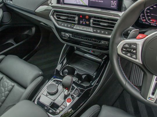 Inside, the cabin blends luxury with motorsport-inspired detailing. M multifunction seats in Merino leather provide exceptional support, while carbon-fibre interior trim, M seatbelts, and the thick-rimmed M leather steering wheel reinforce the performance focus. The technology suite includes BMW’s latest Operating System 8 with a high-resolution curved display, full-colour head-up display, Harman Kardon surround sound system, wireless Apple CarPlay/Android Auto, and the full suite of BMW ConnectedDrive services.