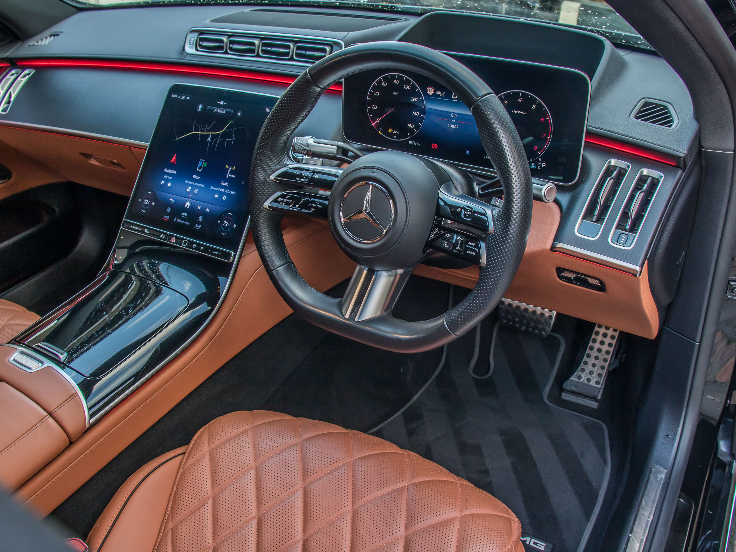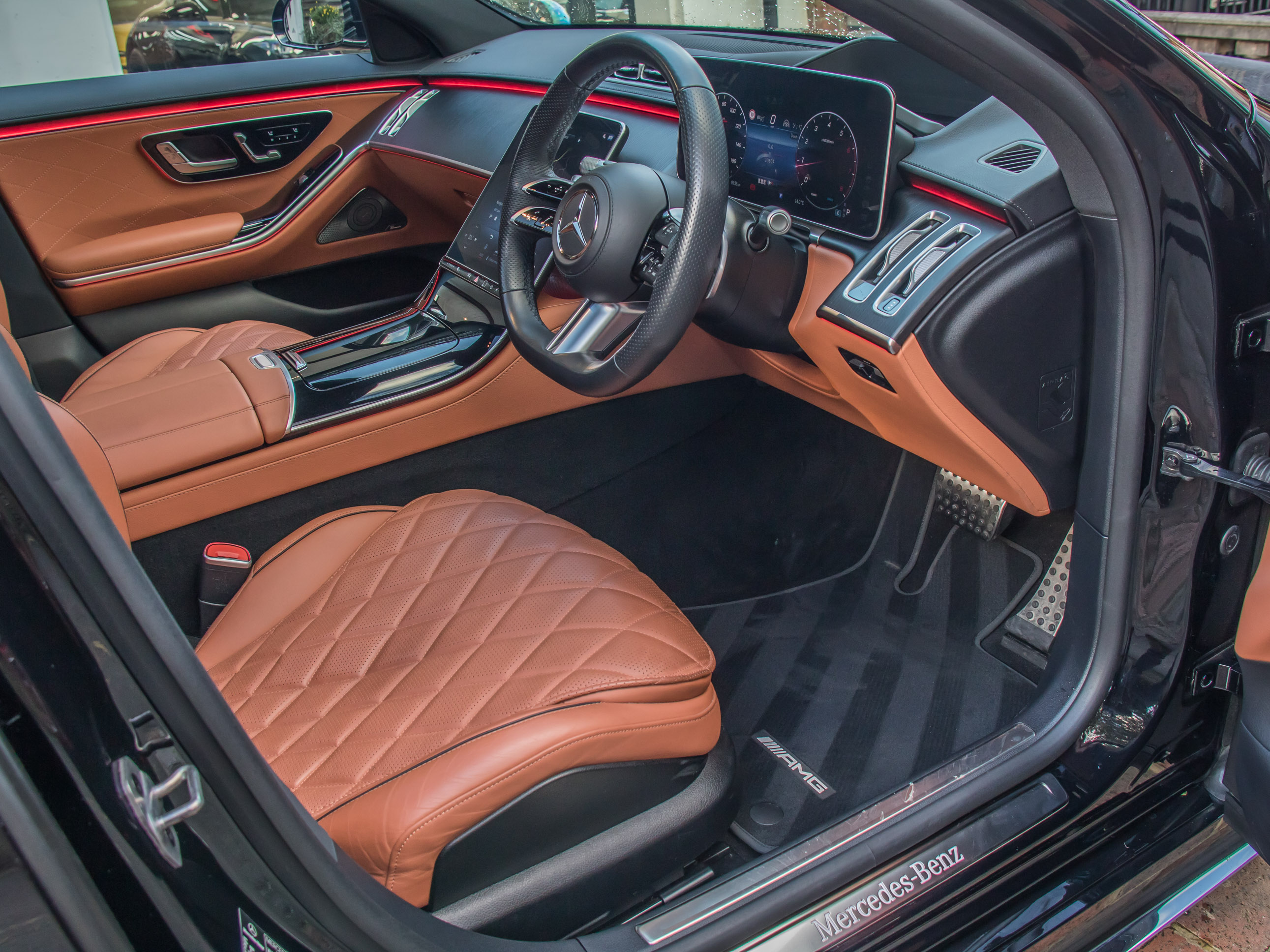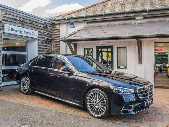 AMG Line styling gives the car a more purposeful stance, with larger 21" alloy wheels, AMG body styling and a sportier interior finish, while retaining the unmistakable presence of the flagship S-Class. Advanced technology includes adaptive air suspension, rear axle steering for improved agility, panoramic glass roof, 360-degree camera system, adaptive cruise control with active steering assist and an extensive suite of driver assistance systems.