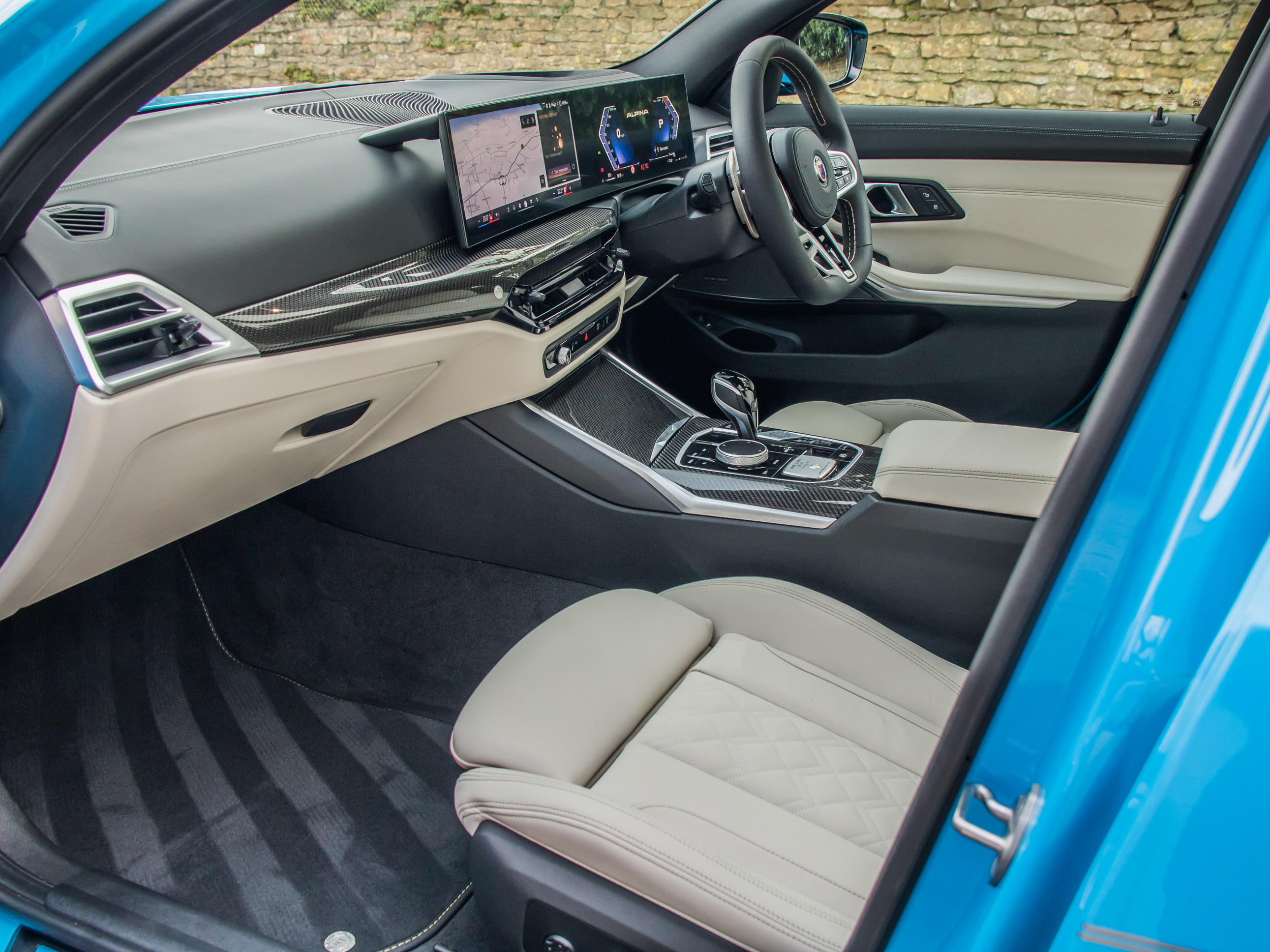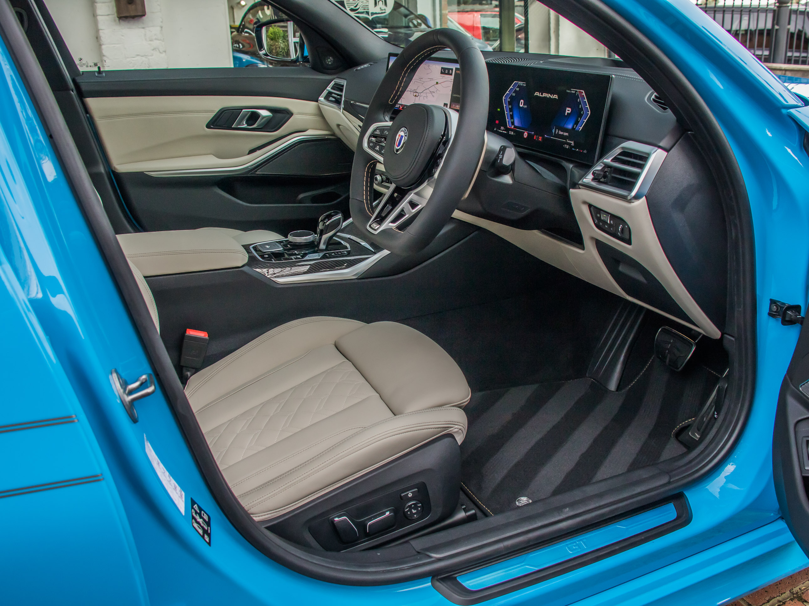 The Riviera Blue paintwork is particularly striking and extremely rare on an Alpina, creating a dramatic contrast with the Ivory White Merino Leather interior, which provides a bright and luxurious cabin environment. As with all Alpina models, the car benefits from subtle but distinctive styling details, bespoke wheels and a beautifully finished interior that reflects the marque’s craftsmanship and attention to detail.
