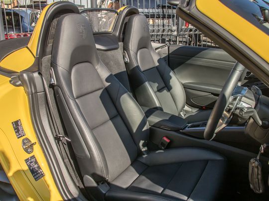 This example is equipped with a set of 20" 911 Turbo Alloy Wheels, as well as having its Roll-Over bars painted to match the exterior Racing Yellow paintwork.