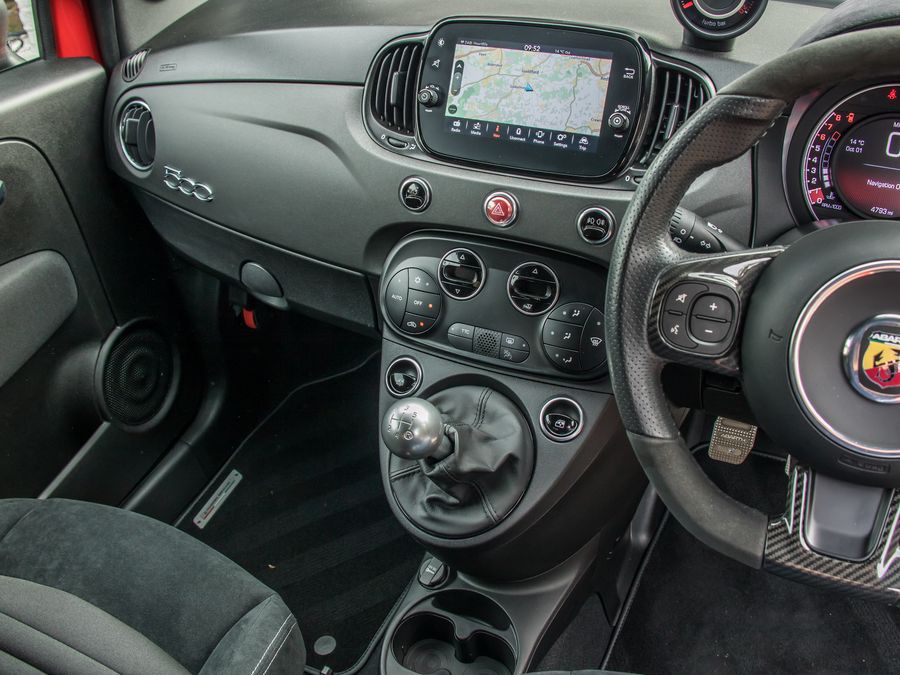 Apple CarPlay And Android Auto, Koni Frequency Selective Damping Suspension, Brembo Performance Braking System, Limited Slip Differential, Record Monza Active Exhaust System, 17-Inch Alloy Wheels, Bi-Xenon Headlights, LED Daytime Running Lights, Rear Parking Sensors, Sports Mode With Torque Transfer Control, Abarth Sports Pedals, Flat-Bottom Leather And Alcantara Steering Wheel, Sabelt Sports Seats With Carbon Shells, Aluminium Gear Knob, 7-Inch Uconnect Touchscreen With Bluetooth Connectivity, DAB Digital Radio, Automatic Climate Control, Tyre Pressure Monitoring System, Abarth Side Stripes And Exterior Detailing.
