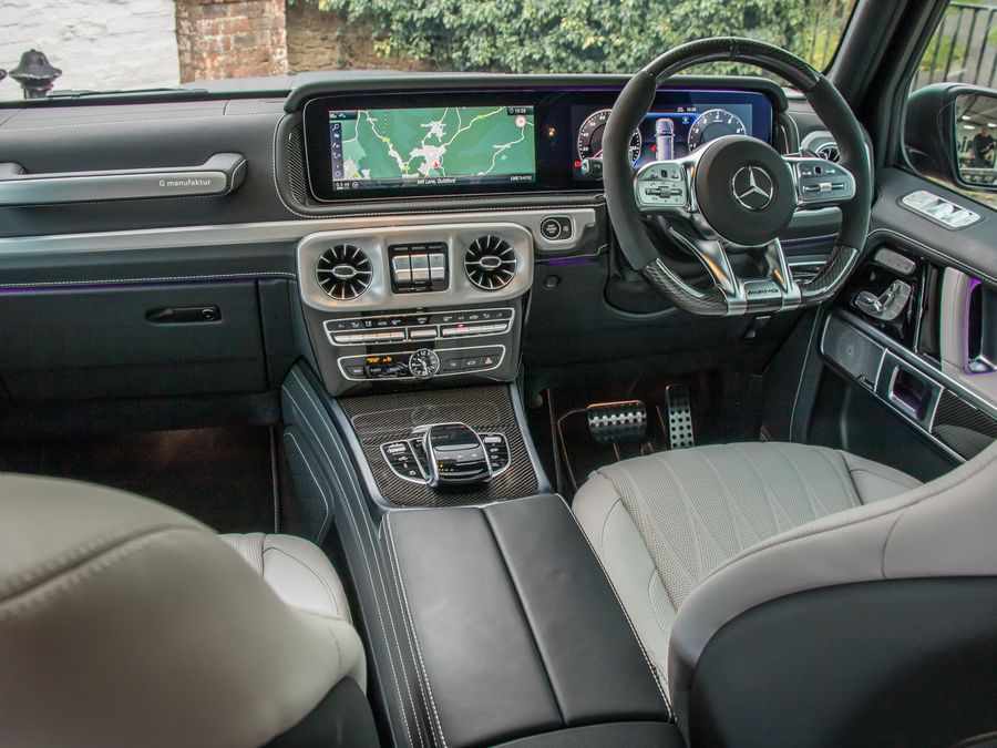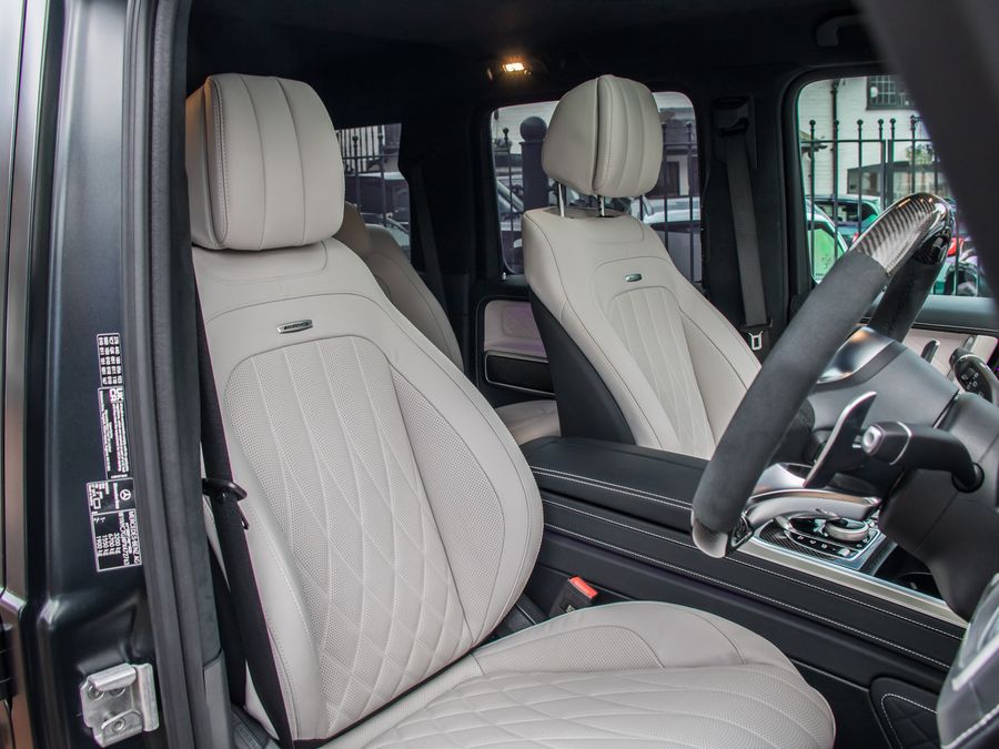 Full PPF, TopCar Inferno Light Pack Carbon Fibre Kit, G Manufaktur Platinum White and Black Nappa Leather interior, Heated Steering Wheel, 22" AMG Monoblock Alloy Wheels, Carbon Fibre Interior Package.