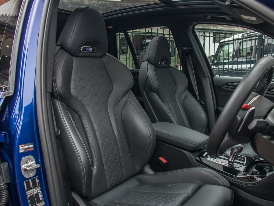 Under the bonnet lies BMW’s renowned 3.0-litre M TwinPower Turbo inline-six producing 510 PS (503 bhp) and 650 Nm of torque, driving all four wheels through the 8-speed M Steptronic transmission and the M xDrive all-wheel-drive system. Performance is nothing short of electrifying: 0–62 mph in just 3.8 seconds and a top speed of up to 177 mph with the optional M Driver’s Package. Adaptive M suspension, Active M differential, and M-specific chassis tuning ensure the X3 M Competition corners with the poise and precision expected of a true M car.