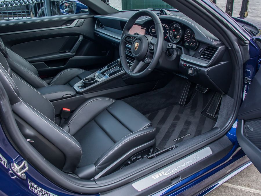 Powered by Porsche’s 3.0-litre twin-turbocharged flat-six engine producing 444 bhp, this Carrera S combines rear-wheel drive purity with exceptional everyday usability. The 8-speed PDK transmission delivers seamless shifts, ensuring the perfect balance of performance and refinement.