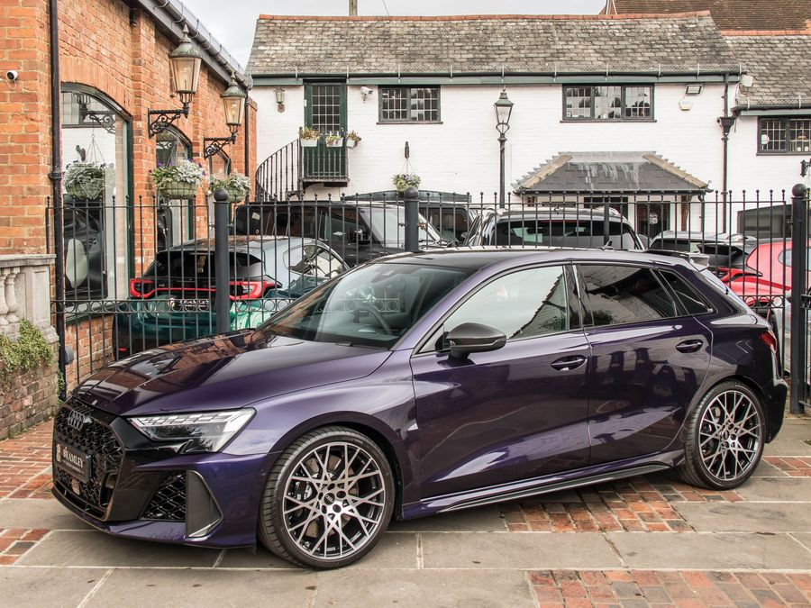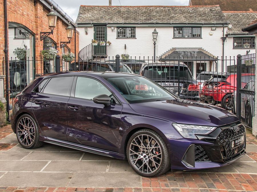 We are pleased to offer this highly specified 2025 Audi RS3 Carbon Vorsprung, finished in the rare and striking Audi Exclusive Velvet Purple. Protected from new with full Paint Protection Film, the car presents beautifully throughout.