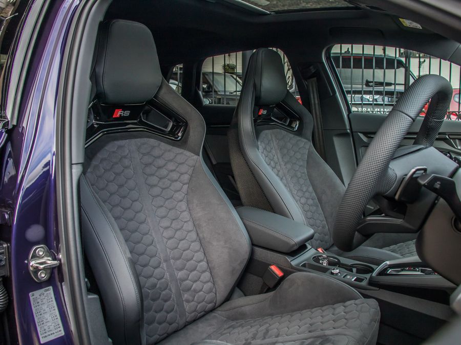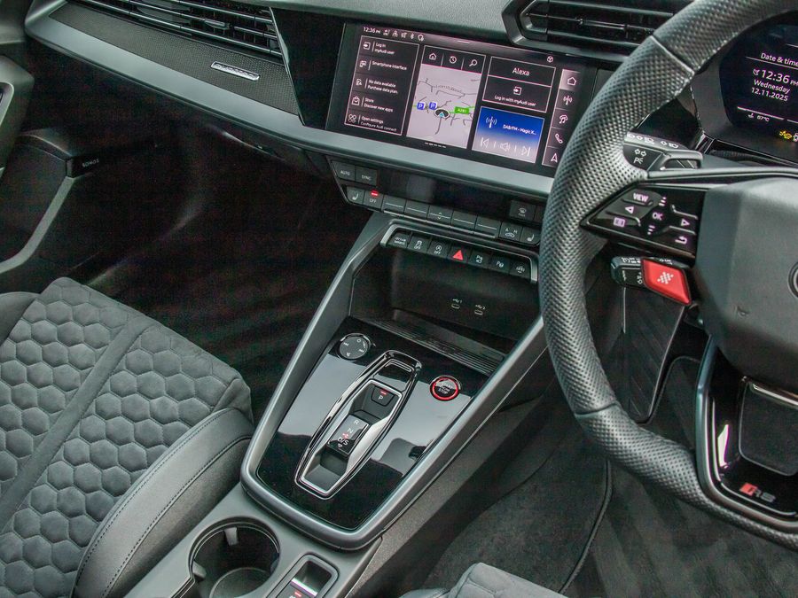 SONOS Sound System, Apple CarPlay and Android Auto, RS Sports Suspension, RS Torque Splitter, RS Drive Modes, RS Sports Exhaust System, LED Headlights with Dynamic Indicators, LED Rear Lights, 19-Inch Alloy Wheels, Power Folding Mirrors, Heated Front Seats, Fine Nappa Leather Upholstery, RS Digital Cockpit Plus, MMI Navigation Plus with MMI Touch, Three-Zone Climate Control, Keyless Entry and Start, Parking System Plus with Front and Rear Sensors, Rear-View Camera, Adaptive Cruise Assist, Lane Departure Warning, Blind Spot Monitoring, Traffic Sign Recognition, Hill Hold Assist, Tyre Pressure Monitoring System, Alarm and Immobiliser.