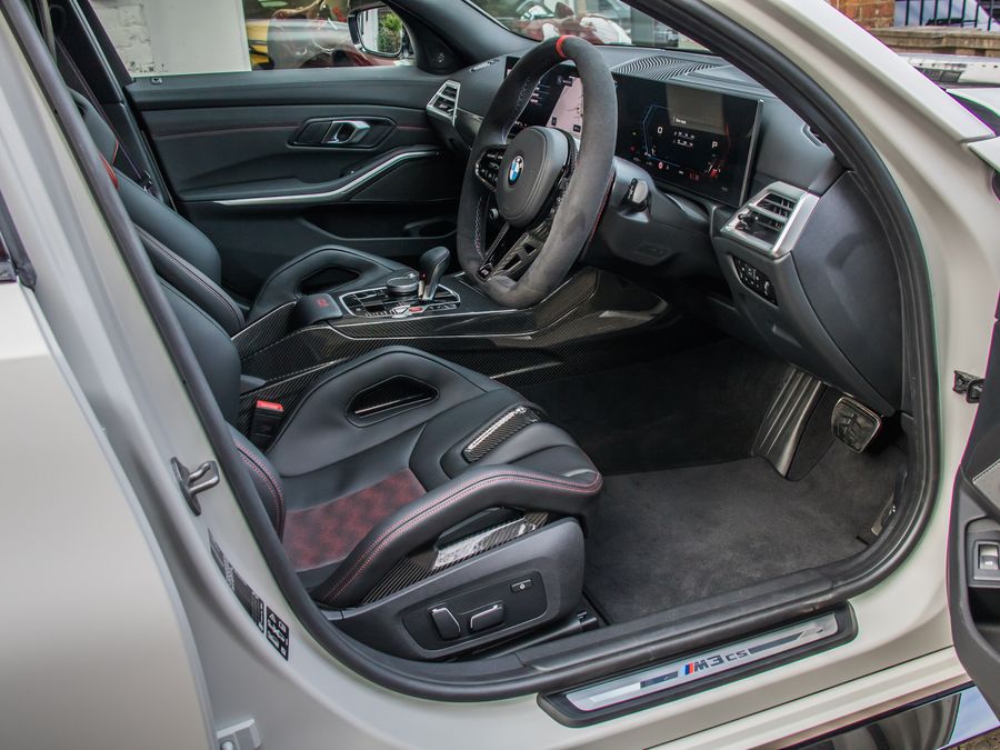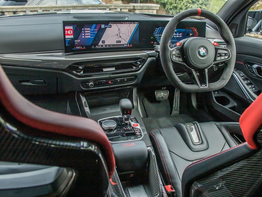 M xDrive All-Wheel Drive System, Active M Differential, Adaptive M Suspension, M Servotronic Steering, M Drive Professional with Configurable Driving Modes, M Traction Control, M Carbon Fibre Reinforced Plastic Body Components, Carbon Fibre Roof, Carbon Fibre Bonnet, Lightweight Construction, Quad Exhaust System with Active Sound Control, Adaptive LED Headlights with High Beam Assist, LED Daytime Running Lights, M Exterior Styling Package, Gloss Black Exterior Trim, Power Folding Heated Door Mirrors, Electric Tailgate, Privacy Glass, Rain-Sensing Wipers, M Carbon Bucket Seats, Heated Front Seats, M Alcantara Steering Wheel, Digital Instrument Display, BMW Curved Display with iDrive System, Navigation System, Apple CarPlay and Android Auto Compatibility, Bluetooth Connectivity, Wireless Smartphone Charging, Harman Kardon Surround Sound System, Dual-Zone Automatic Climate Control, Ambient Interior Lighting, Park Distance Control with Front and Rear Sensors, Reversing Camera, Parking Assistant, Adaptive Cruise Control, Lane Departure Warning, Blind Spot Monitoring, Collision Warning System, Tyre Pressure Monitoring System, Keyless Entry and Start.